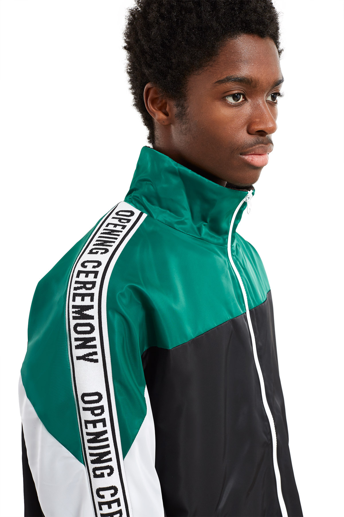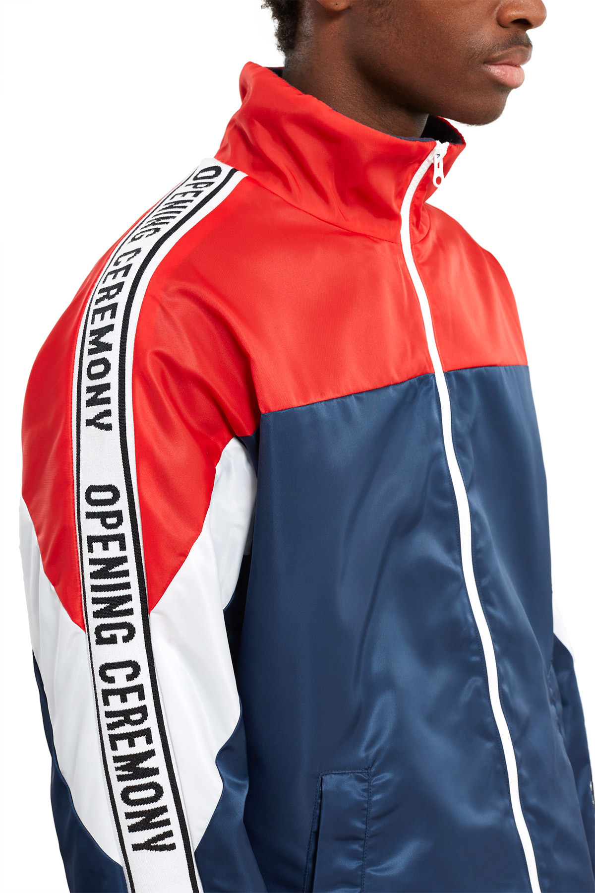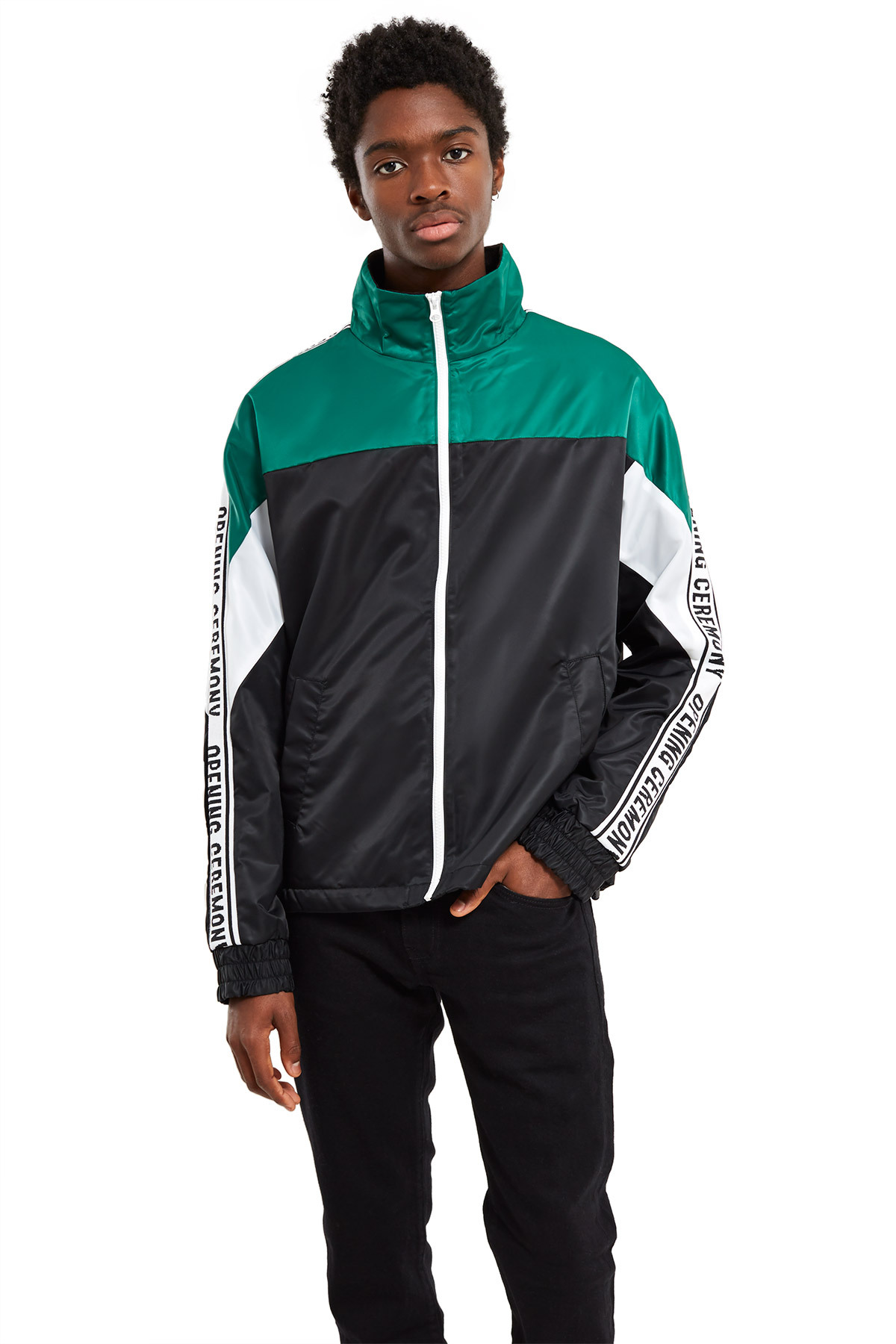 Opening Ceremony has recently release a Nylon twill logo three tone jacket in two combination of colors. These combinations are red/blue/green and black/green/white. The jackets feature a jacquard “Opening Ceremony” Logo tape along the sleeves. On the interior of the jacket, there is warm fleece lining and in the front, a bold white zipper.